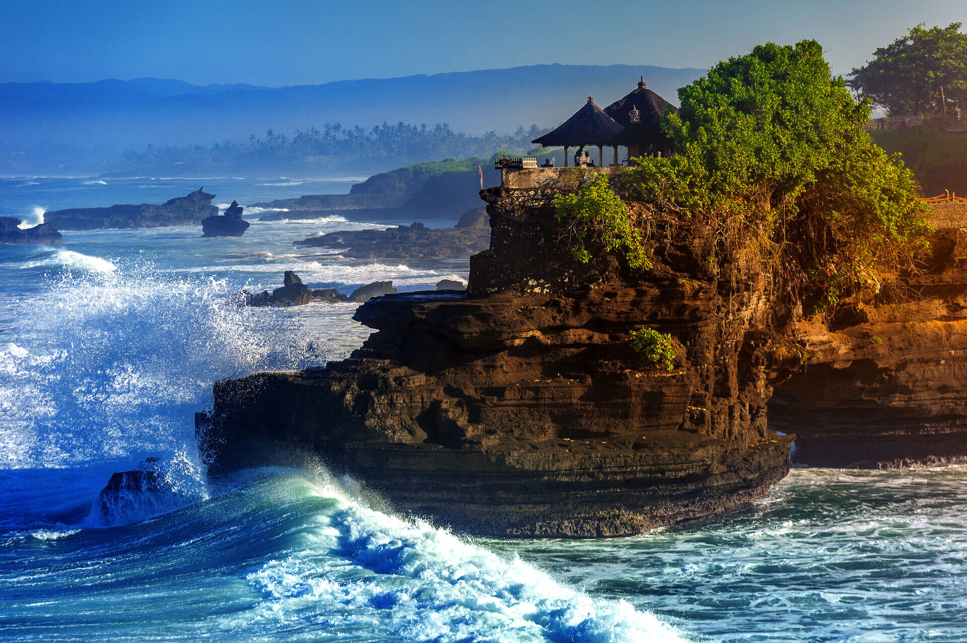 Heute fahren Sie in die faszinierende Provinz Tabanan. Erster Halt ist der Pura Luhur Batukaru, einer der sechs heiligsten Tempel Balis. Der Tempel aus dem 13. Jahrhundert liegt am Fuß eines Vulkans, eingebettet in üppigen Regenwald – ein Ort spiritueller Ruhe, umgeben von exotischen Bäumen und Pflanzen. Anschließend Weiterfahrt zu den berühmten Reisterrassen von Jatiluwih, die zum UNESCO-Welterbe zählen. Dort genießen Sie die herrliche Aussicht auf die kunstvoll angelegten Terrassenfelder. Nach dem Essen geht es weiter zum Markt von Candikuning, wo Sie tropische Gewürze, Früchte und Blumen entdecken können. Nur wenige Minuten entfernt besuchen Sie zum Abschluss den malerischen Ulun-Danu-Beratan-Tempel am Beratan-See. Der Tempel, der der balinesischen Wassergöttin gewidmet ist, liegt auf 1.200 m Höhe, umgeben von bewaldeten Hügeln – ein besonders fotogener Ort.
