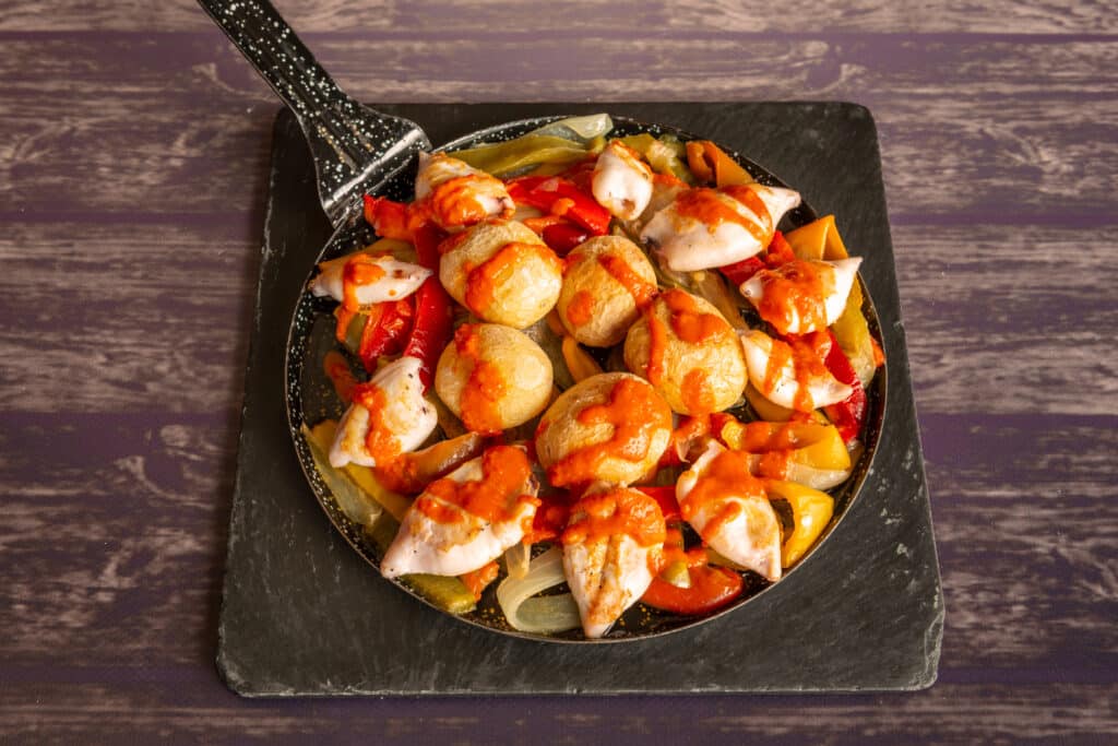 La gastronomie canarienne mise sur la simplicité et la fraîcheur. Les papas arrugadas, petites pommes de terre cuites en saumure, se dégustent avec les sauces mojo rojo (plus relevée) et mojo verde (aux herbes), véritables incontournables d’un séjour aux Canaries. Le gofio, farine de céréales torréfiées, accompagne soupes, desserts et plats traditionnels. Les fromages de chèvre, souvent affinés et parfois fumés, s’associent parfaitement aux vins volcaniques de Lanzarote. Côté mer, les poissons du jour, les calmars et les fruits de mer se savourent dans les petits restaurants familiaux, notamment près des ports. En dessert, le bienmesabe à l’amande et le miel de palme offrent une touche sucrée typique.